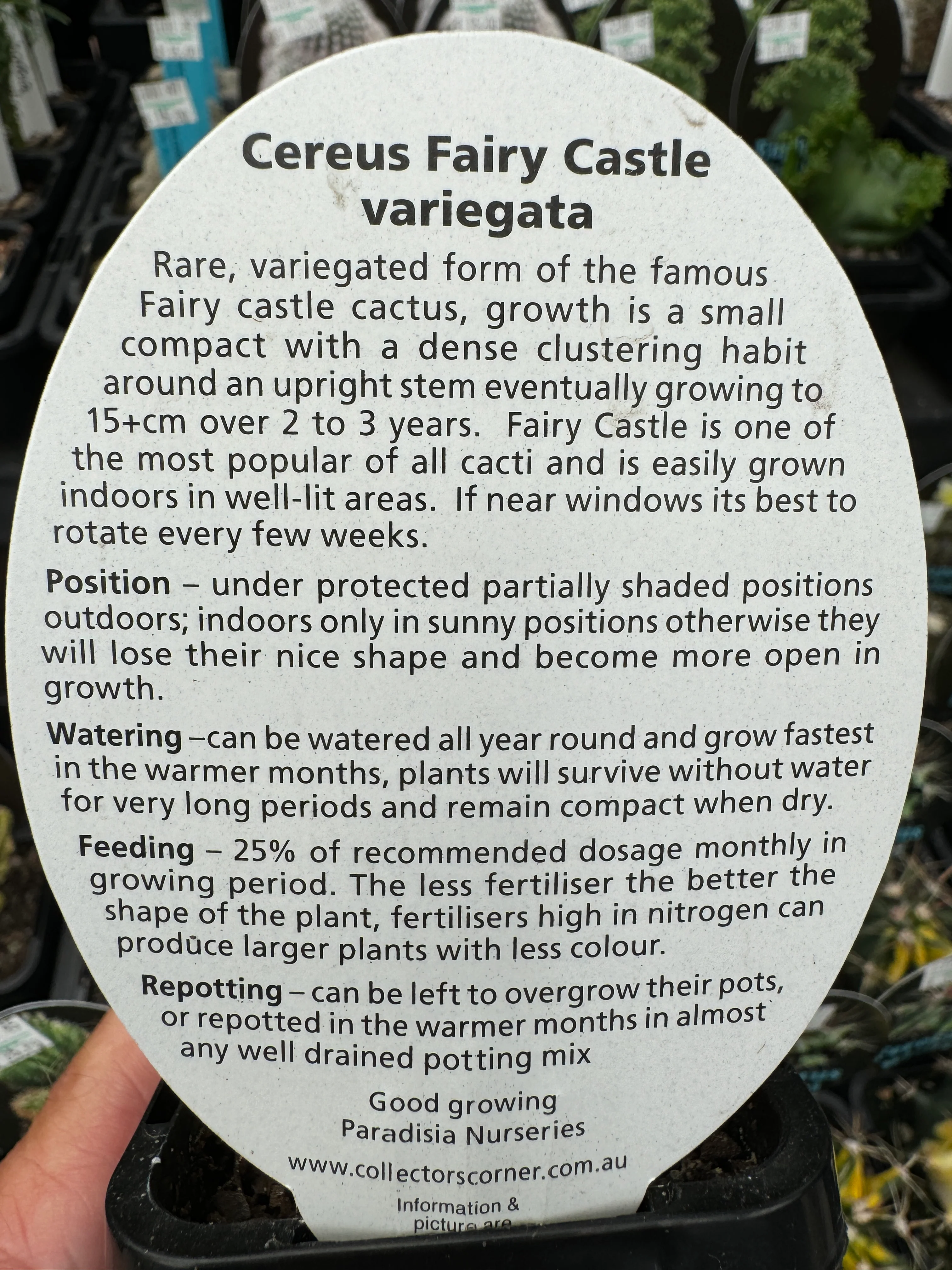 - Fertiliser: Feed with a diluted cactus fertiliser during the growing season.